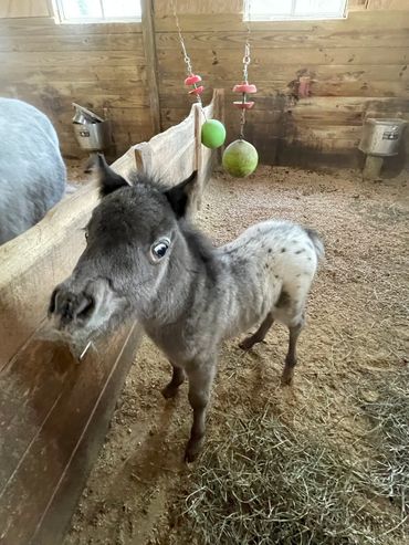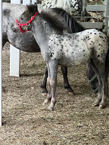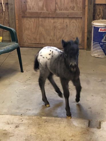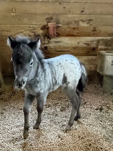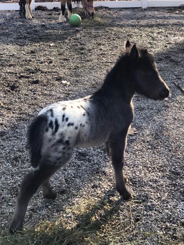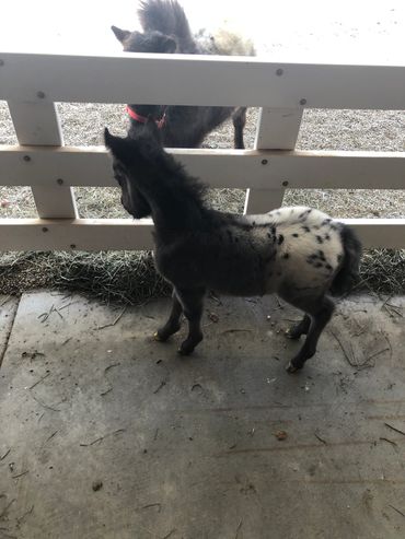 Harley is a Falabella blend Appaloosa. He measures approximately 28". He just won first place in Miniature Horse Show for color. Triple registered and DNA tested. Expected height 28-29”. He’s a little guy. He is an exceptional stud colt. Should throw color (one copy of LP and one copy of PATN) He is out of Porterfield Falabella Pharoah, grandfather is Falabella Toyland Tamboro both stunning stallions. Grandmother is Falabella Sstar Seven DD Fantasia a refined Arabian-type Bay Leopard Pint